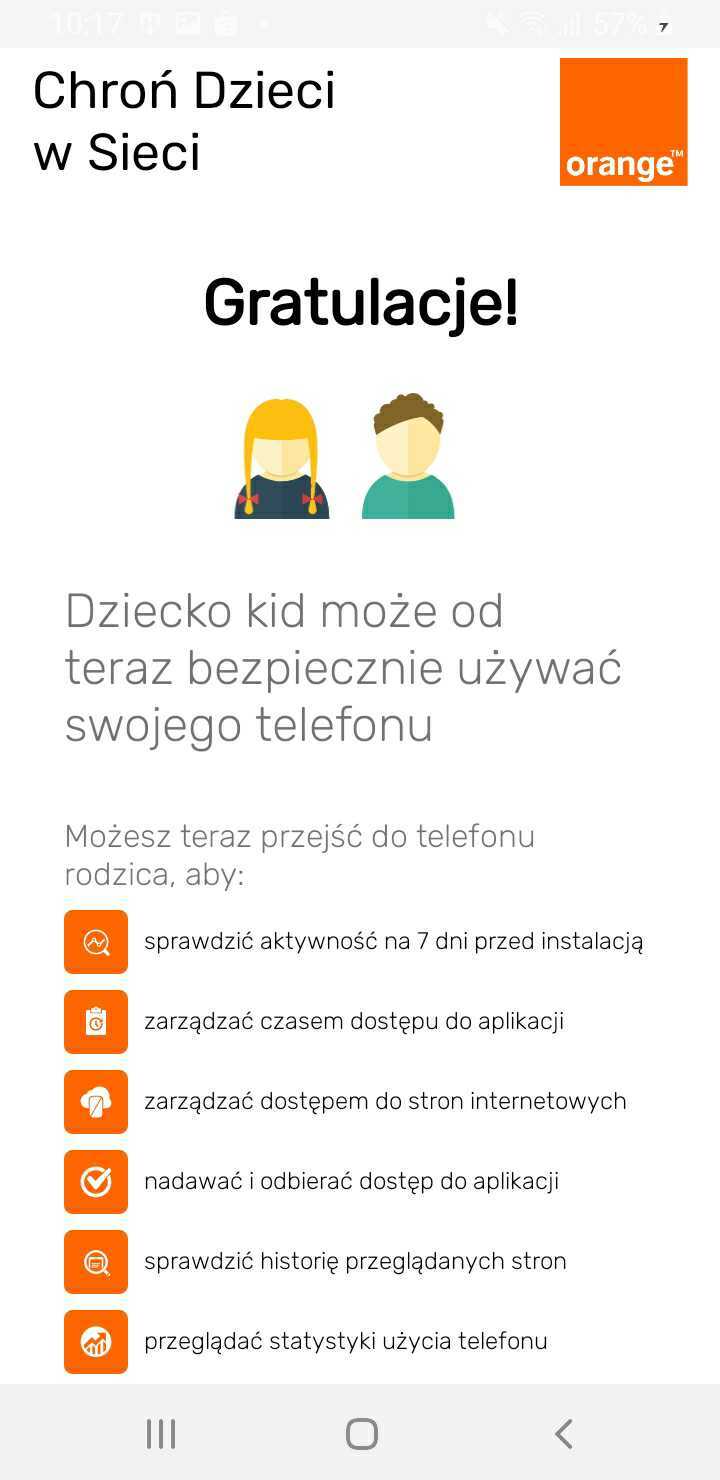 Po zatwierdzeniu wszystkich wymaganych opcji ochrona na urządzeniu dziecka jest aktywna.