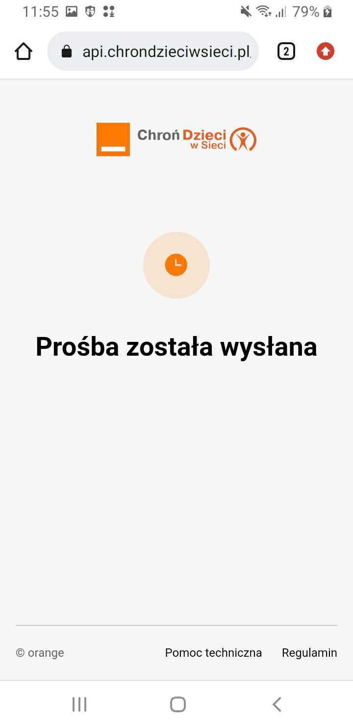 Jeśli dziecko na swoim urządzeniu wpisze adres zablokowanej strony www ujrzy poniższy ekran